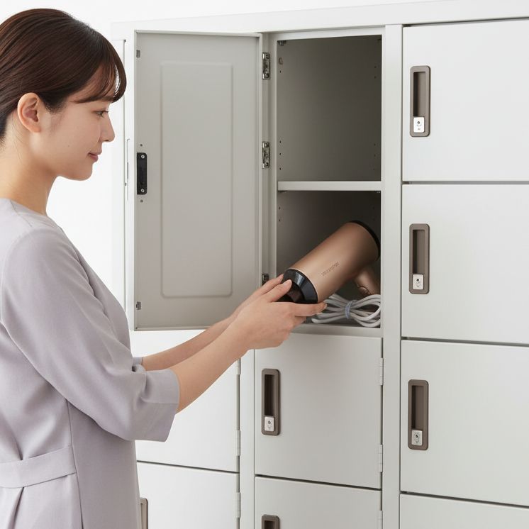 ロッカー前で、気になる美容家電をチェック&利用開始。